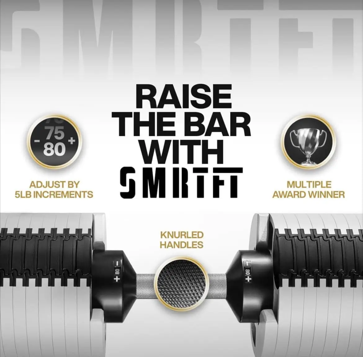 SMRTFT Adjustable Dumbbells deliver the genuine feel of traditional weights without unnecessary bulk